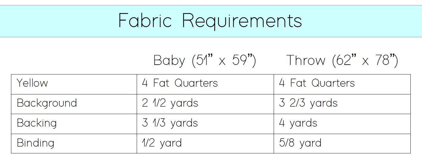 The pattern assumes the user has basic piecing and quilting skills. Template and curved sewing techniques are used in the construction of the Jumbo Sunshine quilt.