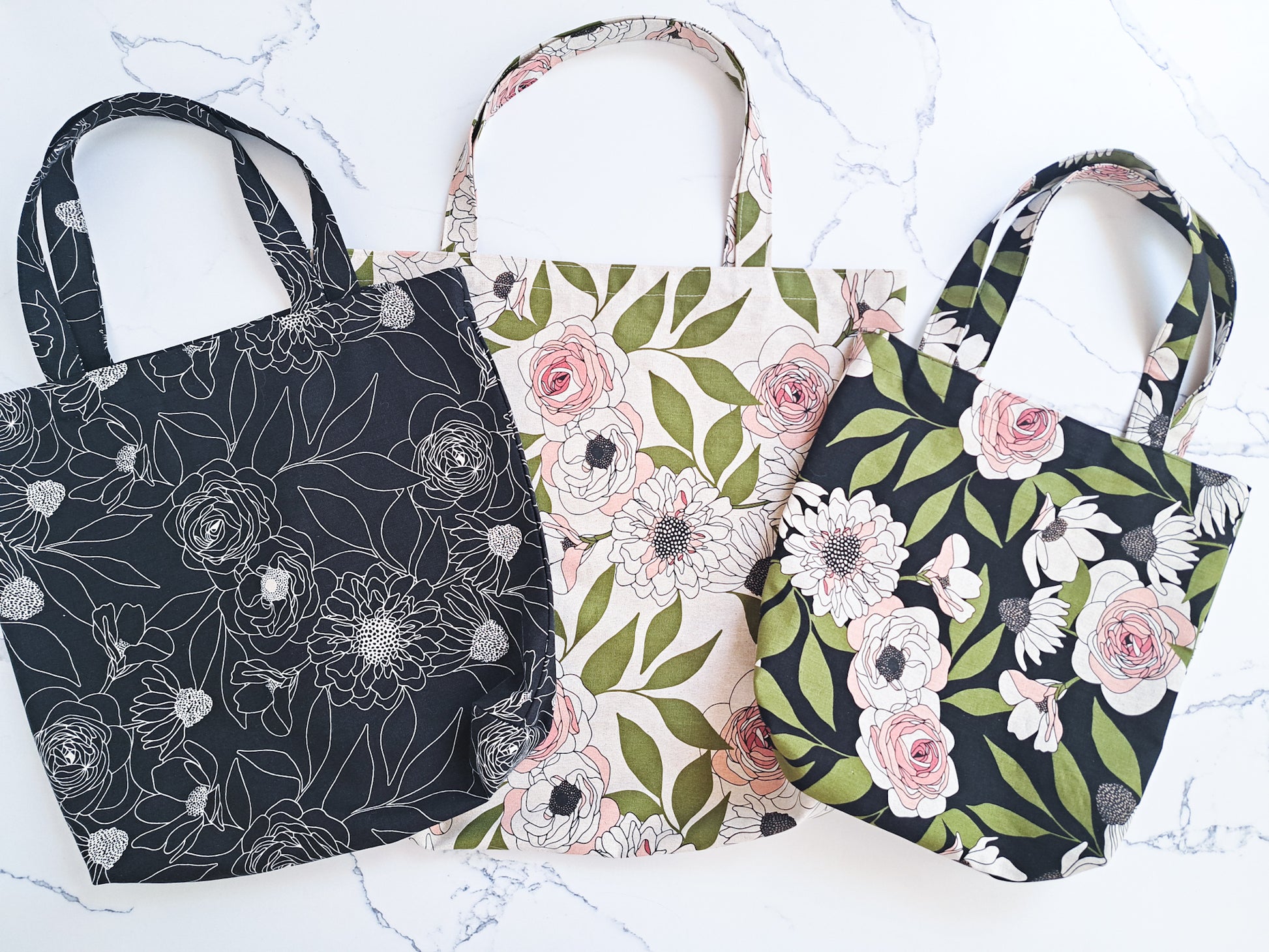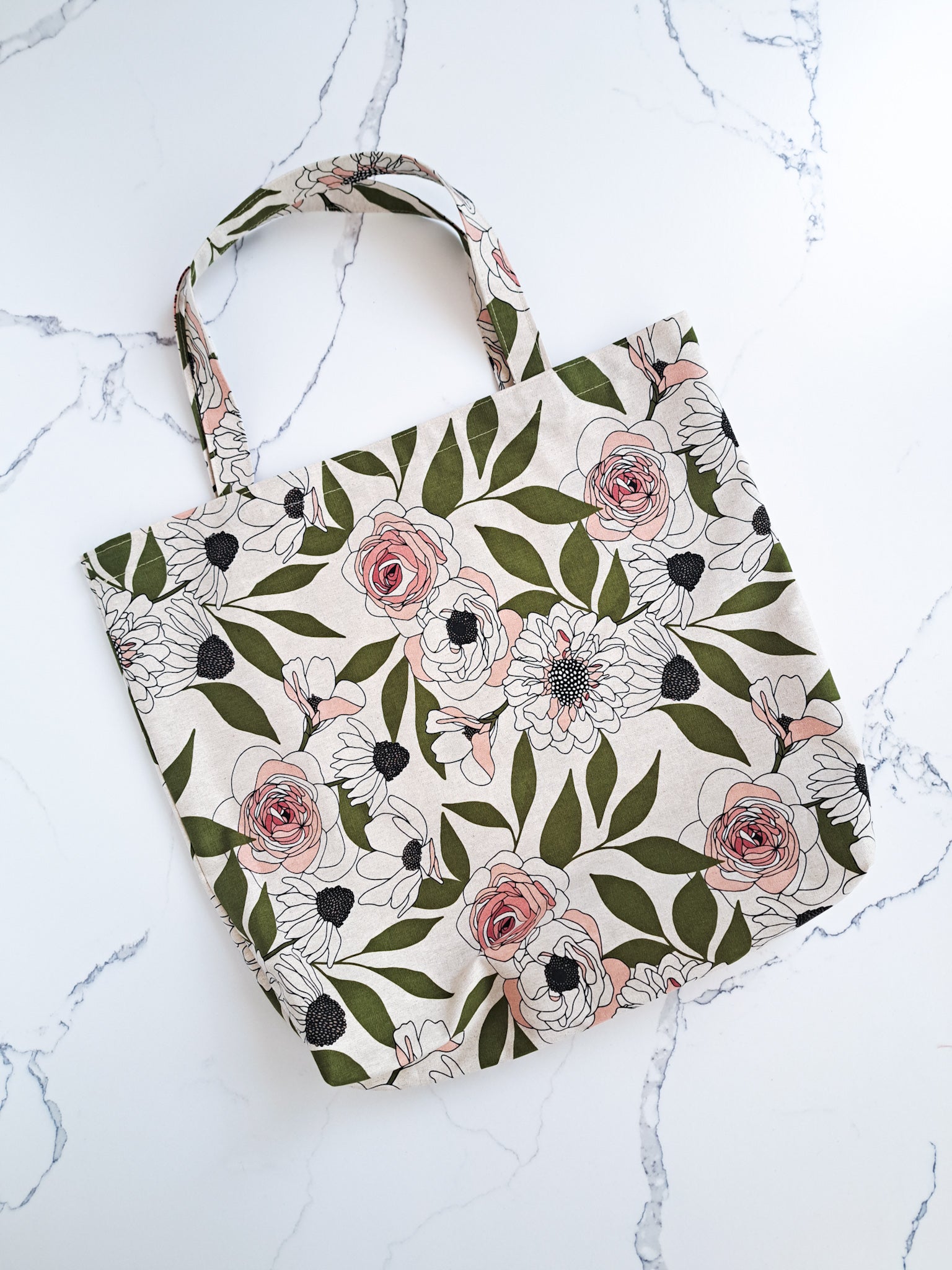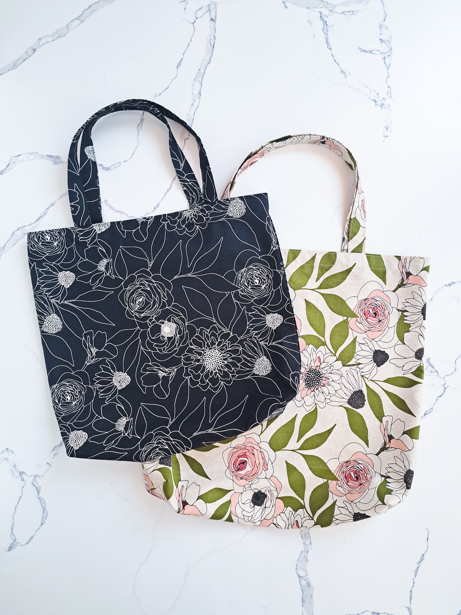 The Omni Tote pattern is a digital download that includes full color, step-by-step graphics walking you through every step of creating your tote bag. The pattern includes instructions for cutting the bag pieces using a ruler in inches (no templates to print) and all directions are in English.