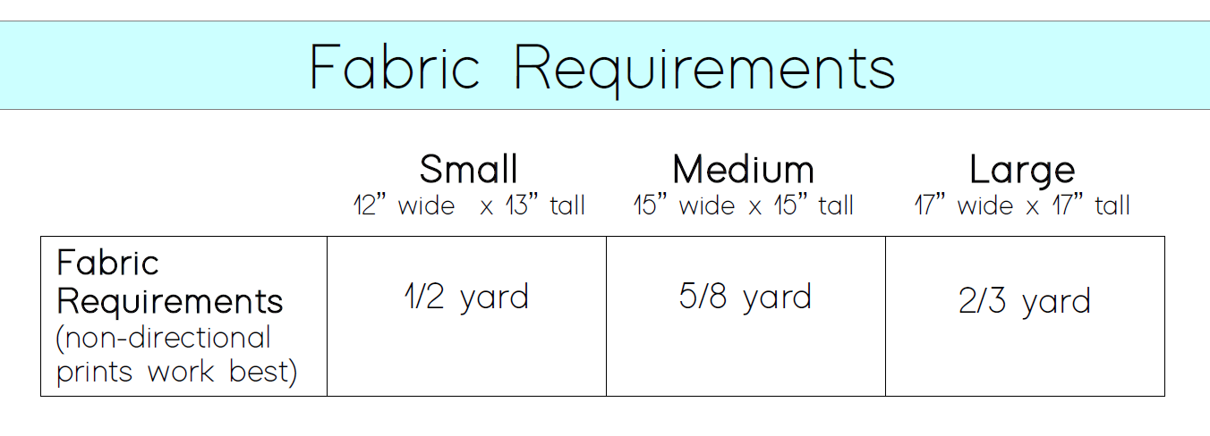 Sizes included: 12" wide x 13" tall (small), 15" wide x 15" tall (medium), and 17" wide x 17" tall (large).