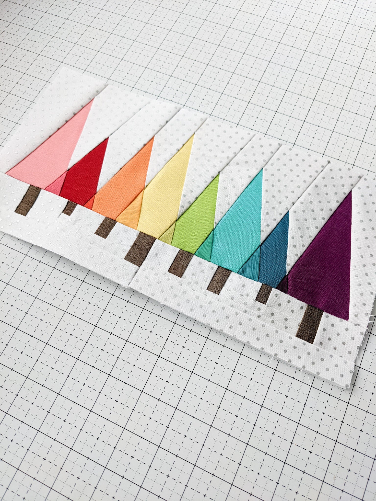 Basic knowledge of Foundation Paper Piecing is expected for the Rainbow Forest quilt block pattern. The pattern is clearly labeled and includes a 1/4" seam allowance plus a few tips to get you going.