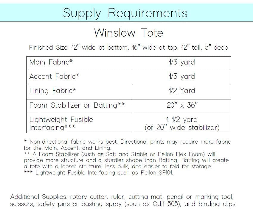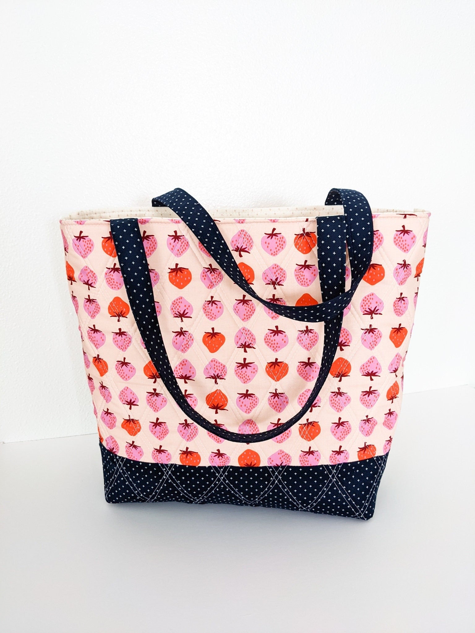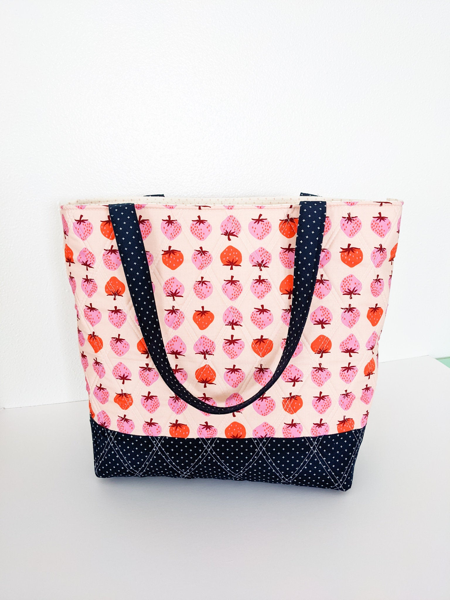The Winslow Tote is a quilted bag pattern that is simple, straightforward, and fast to complete. The pattern includes full color, step-by-step graphics walking you through every step of creating your tote. Basic sewing knowledge is expected, but the pattern is simple enough for a confident beginner to complete.